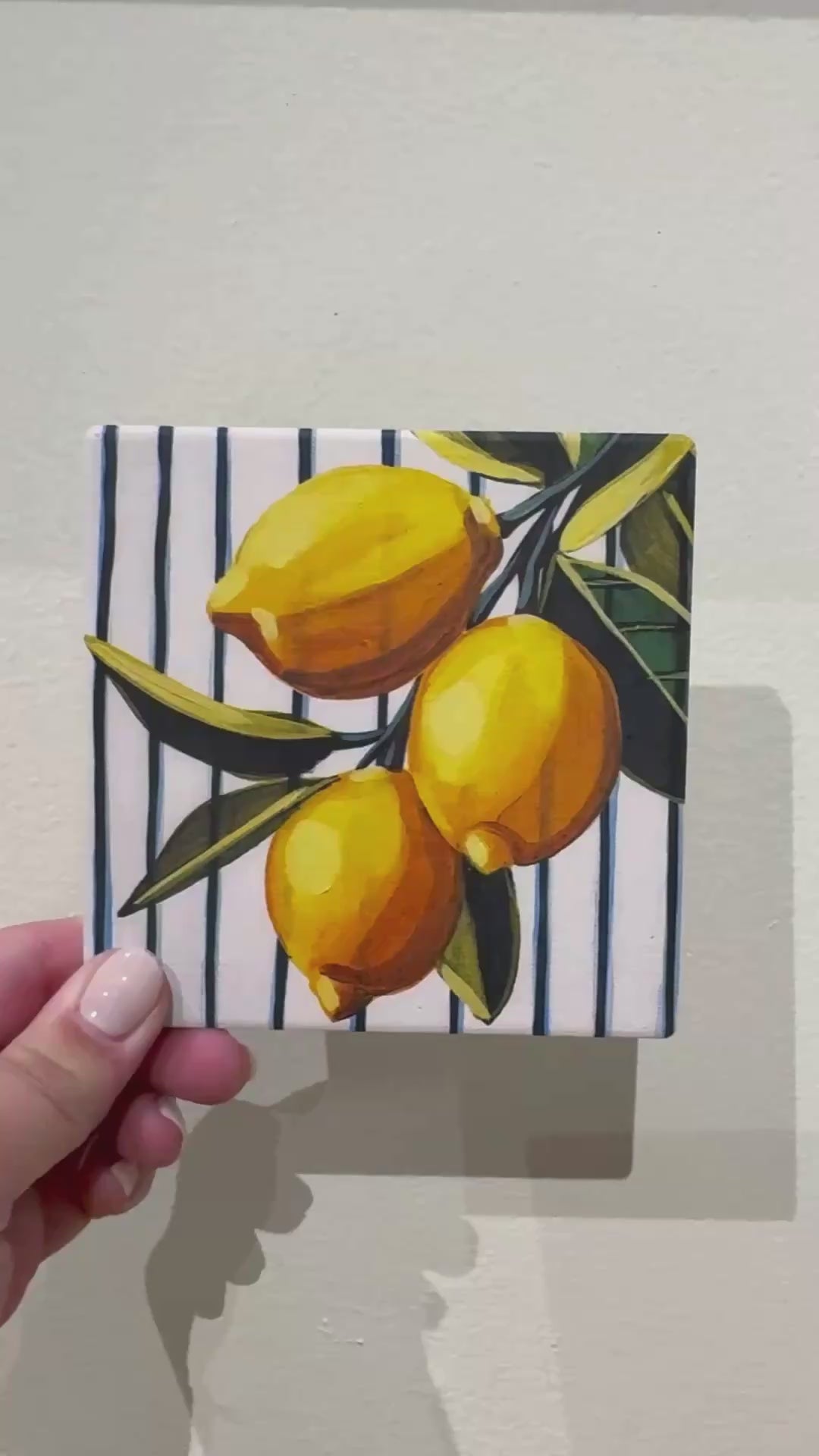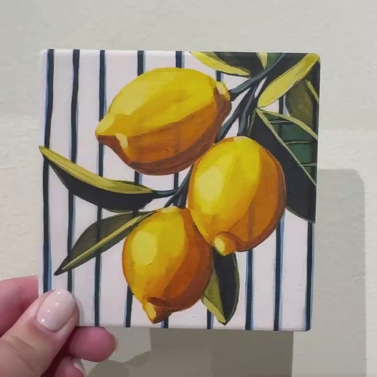 Striped Lemons Ceramic Coaster - Coastal Housewarming Gift
