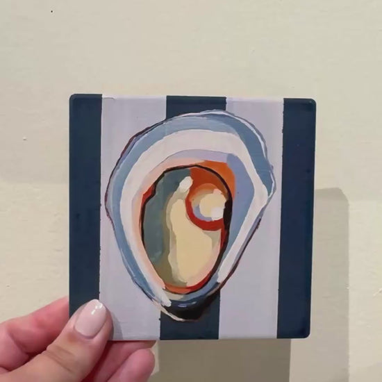 Striped Oyster Ceramic Coaster - Coastal Housewarming Gift